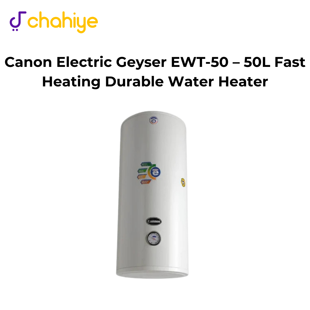The Canon Electric Geyser EWT-50 is a reliable and energy-efficient water heating solution designed to provide consistent hot water for medium-sized households. Built with advanced technology, it delivers quick heating, optimal energy usage, and a steady supply of hot water for daily use.