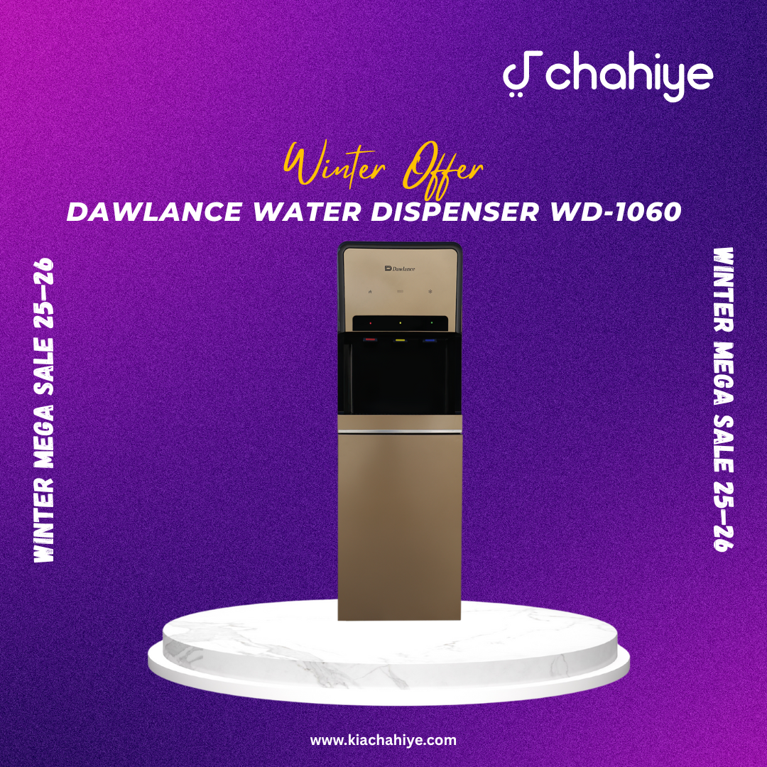 The Dawlance WD-1060 Water Dispenser provides dependable hot, cold, and normal water for everyday home and office needs. It features efficient cooling and heating performance along with a mini refrigerator cabinet for convenient beverage storage. The top load design, mechanical controls, and stylish champagne finish make it a practical and durable choice.