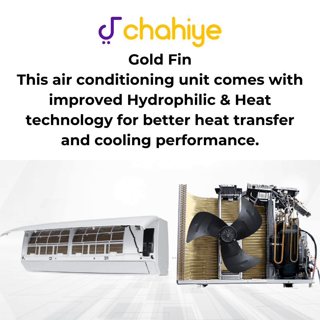The Dawlance Frost 1.5 Ton DC Inverter Split AC delivers powerful and energy-efficient cooling, designed to perform flawlessly in Pakistan’s extreme summer heat. With a cooling capacity of 18000 BTU/h and up to 50% energy savings, this AC ensures comfort without high electricity costs. Its Gold Fin protection, low voltage operation, and sleek modern design make it a perfect addition to any home or office. Built with advanced inverter technology, it offers fast cooling, quiet performance, and long-lasting durability.