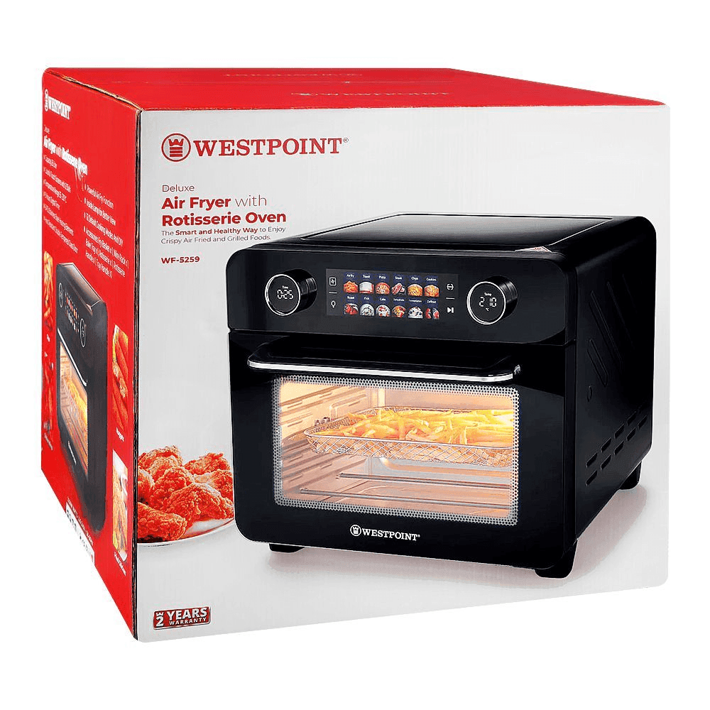 This appliance is a true game-changer—offering professional roast-and-air-crisp capabilities in a compact, elegant design. From juicy rotisserie chicken to crispy fries and bakery-style treats, the WF-5259 makes healthy cooking effortless, efficient, and stylish.
